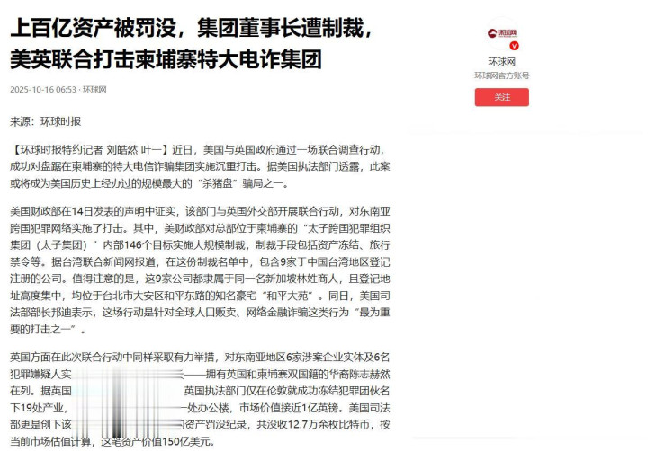 而就在近日,英美两国“齐心协力”,给了在柬埔寨的电诈集团当头一棒。